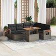 This garden sofa set is the perfect addition to your backyard, terrace, or patio, providing a comfortable and inviting space for chatting with family and friends or simply relaxing and enjoying the outdoors. Durable material: PE rattan, also known as poly rattan, is a strong, low-maintenance synthetic material that looks like natural rattan. It's lightweight, easy to clean, and commonly used for outdoor furniture due to its durability and weather-resistant properties.Adjustable tabletop: The tabletop can be lifted up to make the table higher, which transforms the outdoor table from a coffee table to a dining table. It's perfect for having guests over or eating meals outside.Convenient side table: This outdoor furniture features a foldable side table with a gas spring on the armrests, providing a convenient spot to keep your essentials within easy reach.Removable and washable cover: These seat cushions feature removable covers for easy washing and maintenance.Modular design: This outdoor furniture set has a modular design, making it completely flexible and easy to move around, so you can create a customised outdoor furniture arrangement. Good to know:To make sure your outdoor furniture stays beautiful, we recommend protecting it with a waterproof cover.