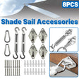 This 8-piece stainless steel fitting set offers a secure and adjustable solution for installing sun shade sails in outdoor areas.Built for durability, each component features a 5mm thickness for added strength, ensuring your sail stays firmly in place.Perfect for patios, decks, and gardens, it suits various sail shapes and delivers easy tensioning with turnbuckles for optimal positioning.