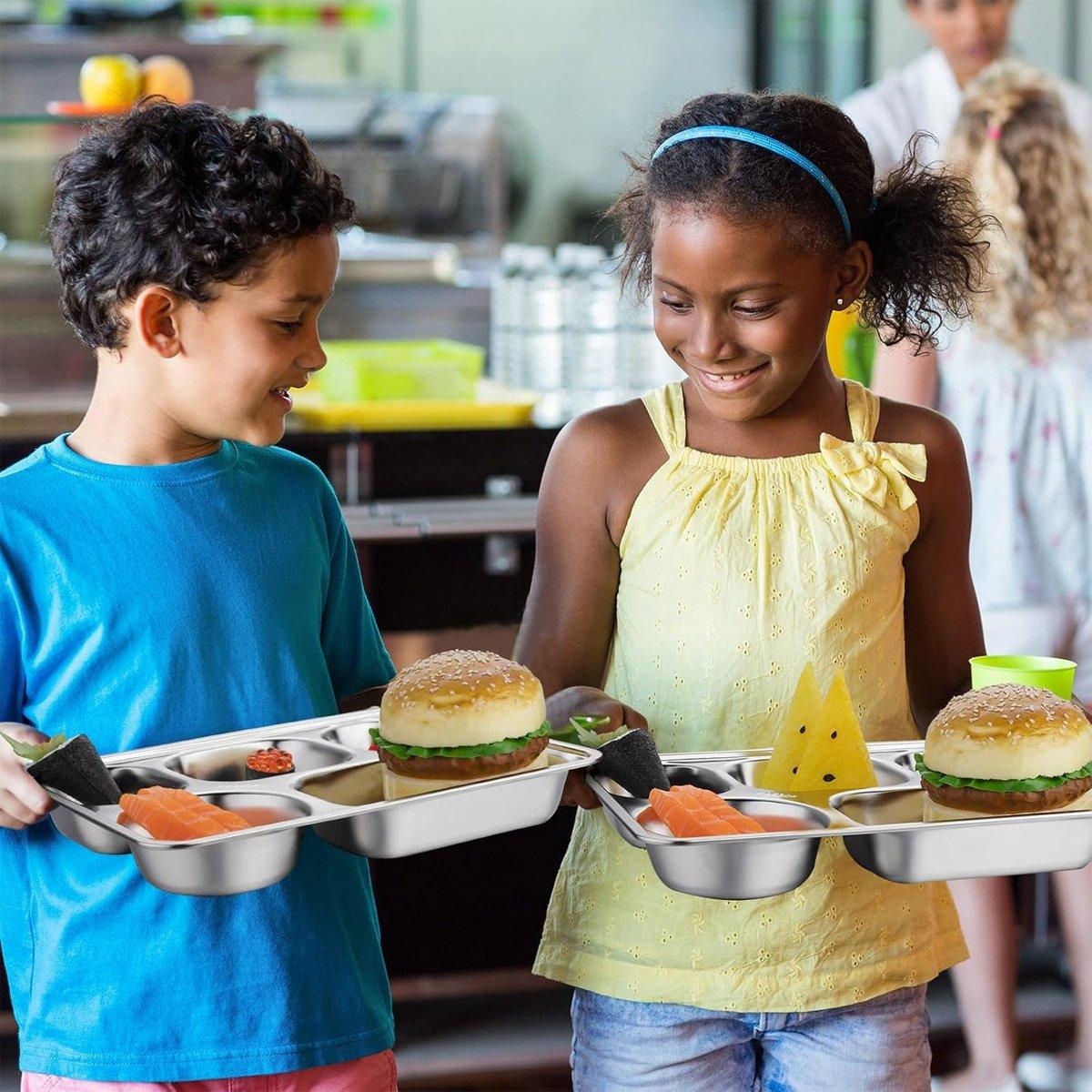 This set of 8 stainless steel dinner plates is perfect for everyday use, featuring a durable 304 stainless steel construction that ensures long-lasting performance. The deep square design of each plate provides ample space for various foods, while the raised rim prevents spills, making them ideal for casual family meals, student lunches, and more. These plates are easy to clean and maintain, offering a practical and stylish addition to your dining collection.