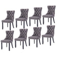 8x Velvet Dining Chairs Upholstered Tufted Kitchen Chair with Solid Wood Legs, Stud Trim, and Ring - Gray