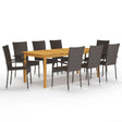 Create a compelling and cohesive aesthetic in your outdoor space with this garden dining set! The dinner table is made of solid acacia wood with an oil finish, which makes it stable, durable and easy to maintain. Featuring a powder-coated steel frame covered with weather-resistant PE rattan, these dining chairs are sturdy and easy to clean. The outdoor chairs are lightweight and can be stacked to save space when not in use. Important note: We recommend covering the dining set during rain, snow and frost for its best service to last.