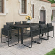 This garden dining set is an excellent choice for your garden, patio or terrace. The garden chair is made of PVC rattan and powder-coated steel frame, making it durable and stable. The table features an aluminium frame and a WPC tabletop. It is easy to clean and suitable for outdoor use. Thanks to the lightweight construction, this outdoor furniture set is easy to move. Additionally, the back cushion is covered with strong fabric and adds extra seating comfort for the chair. Note: We recommend covering the furniture set in the rain, snow or frost.
