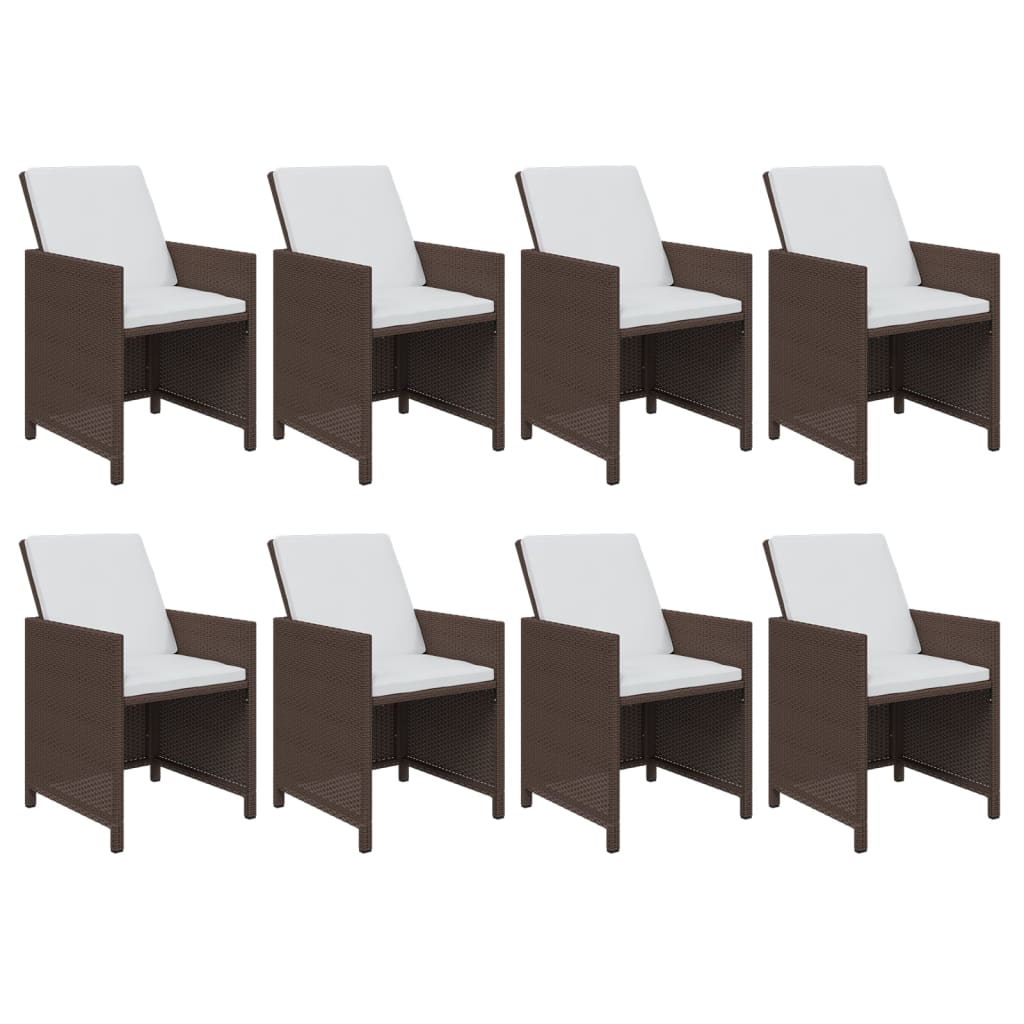 The classic garden dining set, featuring an elegant and contemporary design, is a great choice for dining and relaxing in your garden. Suitable for outdoor use: Made of weather-resistant and water-resistant PE rattan, this outdoor dining set is easy to clean, hard-wearing and suitable for daily use. Sturdy frame: The powder-coated steel frame makes patio dining set sturdy and durable. Comfortable experience: The thick, soft, foam-filled seat and back cushions also add additional seating comfort. Flexible design: You can pull the backrest down and store the chairs under the table, saving valuable storage space when the set is not in use. Thanks to the lightweight construction, all items are easy to move. Note:In order to extend the life of your outdoor furniture, we recommend you to clean it regularly and do not leave it outdoors without protection unnecessarily.Clean: Use a mild soap solution.Storing: If possible, store in a cool, dry place indoors. If the product is stored outdoors, protect it with a waterproof cover. Wipe and dry the excess water or snow from flat surfaces after a rain or snowfall. Allow sufficient air circulation to avoid moisture-related damage.