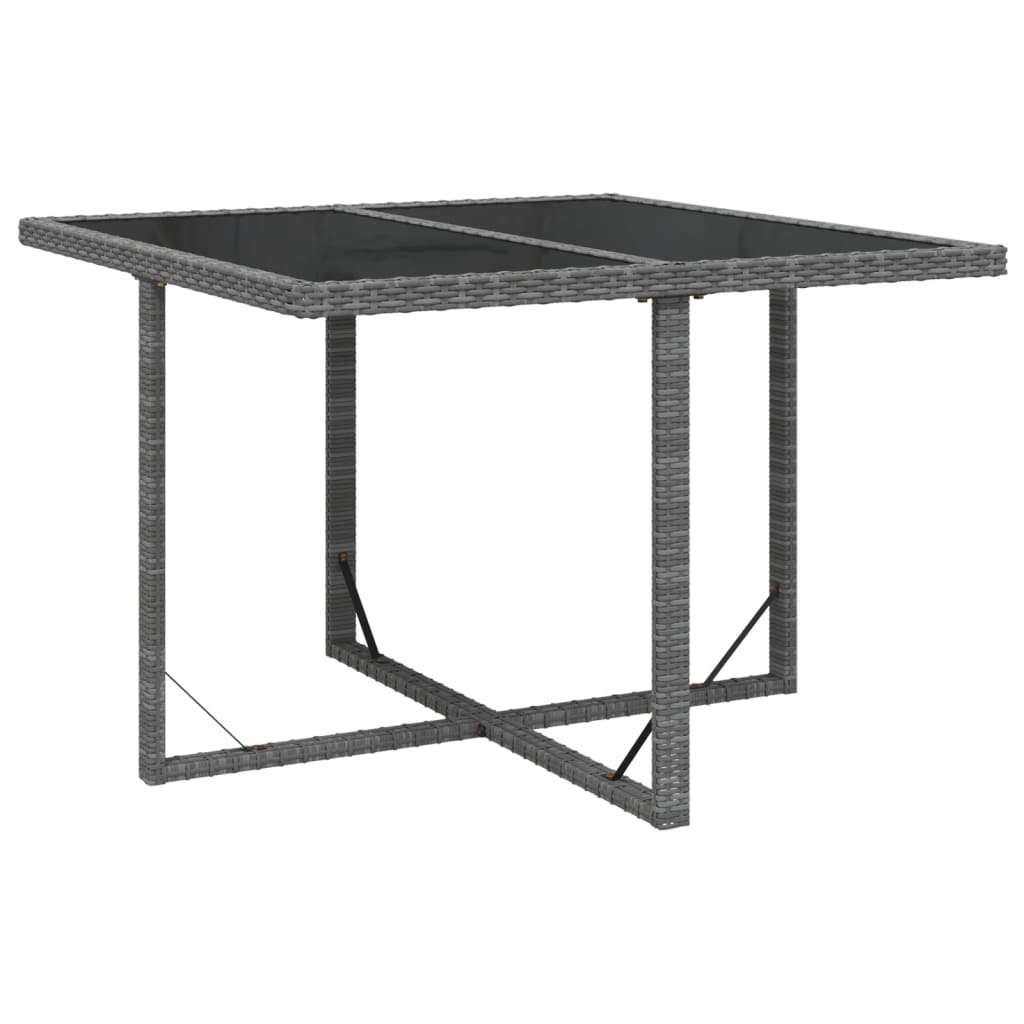 This stylish garden dining set provides you with a leisurely and comfortable time with your family and friends. Made of weather-resistant and waterproof PE rattan, this outdoor dining set is easy to clean, hard-wearing and suitable for daily use. The powder-coated steel frame makes the table, chairs and stools sturdy and durable. The glass tabletop is ideal for placing drinks, food, or some decorative items. The thick, soft, foam-filled seat and back cushions also add additional seating comfort. What's more, you can pull the backrest down and store the chairs under the table, saving valuable storage space when the set is not in use. Thanks to the lightweight construction, all items are easy to move. Note: In order to extend the life of your outdoor furniture, we recommend you to clean it regularly and do not leave it outdoors without protection unnecessarily.Clean: Use a mild soap solution.Storing: If possible, store in a cool, dry place indoors. If the product is stored outdoors, protect it with a waterproof cover. Wipe and dry the excess water or snow from flat surfaces after a rain or snowfall. Allow sufficient air circulation to avoid moisture-related damage.