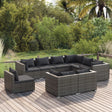 Relax and enjoy your leisure time with this trendy poly rattan garden lounge set! It is meant to be an excellent choice for you to take a breather from your hectic life. Sturdy and lightweight frame: This patio lounge set features a sturdy powder coating steel frame and plastic chrome feet, which is highly durable. Thanks to its lightweight construction, the sofa set is easy to move.Water-resistant material: Made of water-resistant material, the garden sofa set can withstand humidity and rainy weather. It can also be easily cleaned with a damp cloth when needed.Modular design: The modular design makes it possible to place the set in any arrangement or combine them with other modular segments to meet your needs.Comfortable cushions: The thickly padded and removable cushions provide optimal comfort for your outdoor sitting. Note:In order to extend the life of your outdoor furniture, we recommend you to clean it regularly and do not leave it outdoors without protection unnecessarily.Clean: Use a mild soap solution.Storing: If possible, store in a cool, dry place indoors. If the product is stored outdoors, protect it with a waterproof cover. Wipe and dry the excess water or snow from flat surfaces after a rain or snowfall. Allow sufficient air circulation to avoid moisture-related damage.