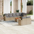 This garden sofa set is the perfect addition to your backyard, terrace, or patio, providing a comfortable and inviting space for chatting with family and friends or simply relaxing and enjoying the outdoors. Durable material: PE rattan, also known as poly rattan, is a strong, low-maintenance synthetic material that looks like natural rattan. It's lightweight, easy to clean, and commonly used for outdoor furniture due to its durability and weather-resistant properties.Storage function with water-resistant bag: Each garden seat features storage space under the seat, complete with a water-resistant bag for storing cushions, toys, and other items. The inner bags have a top cover and can be securely fastened to the seats with hook-and-loop fasteners for added stability.Stable and easy-to-clean tabletop: This garden table has an acacia wood top that is sturdy, durable, and easy to clean with a damp cloth.Removable and washable cover: These seat cushions feature removable covers for easy washing and maintenance.Modular design: This outdoor furniture set has a modular design, making it completely flexible and easy to move around, so you can create a customised outdoor furniture arrangement. Good to know:To make sure your outdoor furniture stays beautiful, we recommend protecting it with a waterproof cover.