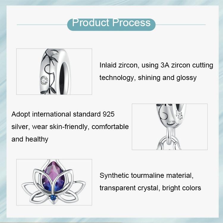 • 1 x 925 Sterling Silver Lotus Pendant Tourmaline Bracelet Beads