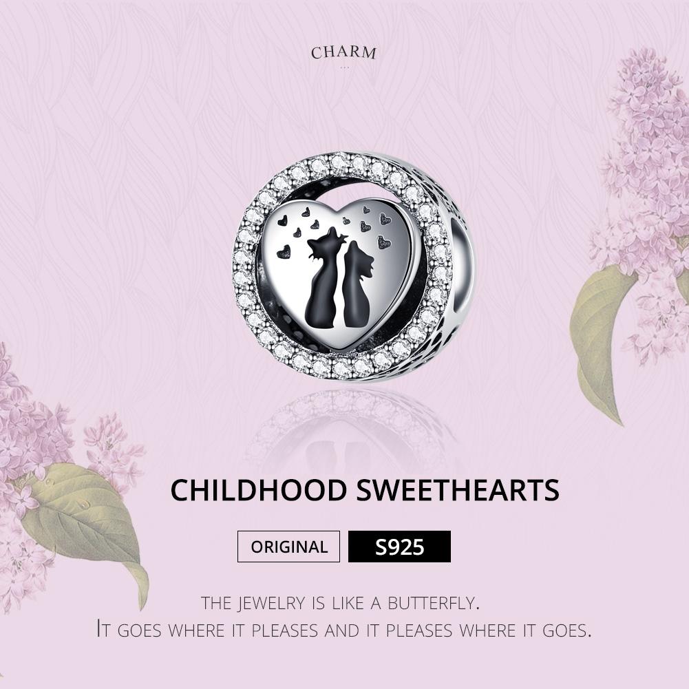 • 1 x 925 Sterling Silver Love Cat Heart Beads For Diy Bracelets Necklaces