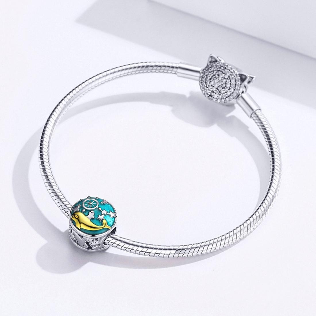 • 1 x 925 Sterling Silver Whale Star Beads For Diy Bracelets Necklaces