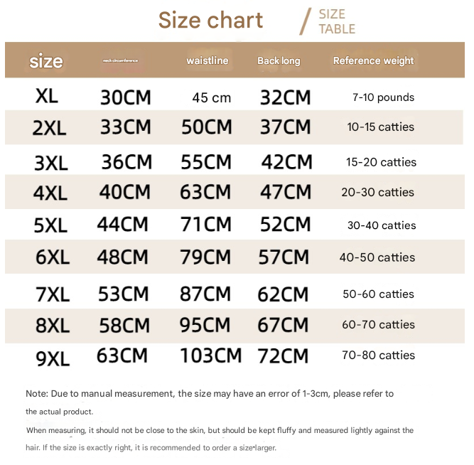 • Ensure you measure your dog's chest and neck to select the correct size for a comfortable fit.