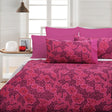 This lovely set features a jacquard motif on Plain dyed fabric underside made from yarn dyed Jacquard Satin Polyester fabric with soft feel. Jacquard motif in pink, plum. Background in pink, plum. Underside in pink.