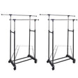 This versatile clothes rack set, including 2 pcs, will provide an instant practical and portable storage solution for hanging clothes. Made of high-quality stainless steel, the dry rack set is durable for years of use. With the 2 hanging bars extendable up to 150 cm, the clothes rack is designed to maximize drying space while using minimized standing space. And its height can be adjusted from 108 cm to 170 cm. Thanks to four smooth gliding 360° castors, the clothes rack can be moved around easily. And 2 of the castors are equipped with brakes, adding extra stability. Moreover, it is easy to assemble and maintain. It can also be dismantled for easy storage. Our mobile clothes rack set is lightweight, strong and stable for storing or transporting your wardrobe.
