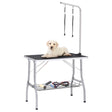 The dog grooming table is a good choice for providing your lovely pets the most comfort while being groomed. This pet grooming table is supported by steel legs, making it stable and sturdy. The large non-slip tabletop creates a comfortable surface for your pets to stand on. Additionally, the stainless steel grooming arm is height adjustable. So, you can adjust in a perfect height to suit you and your pet's size. The table is foldable, which is ideal for mobile pet groomers and home use as it is easy to store. There is a basket under the tabletop, which can be used to store pet daily items. What's more, the round corners prevent injury.