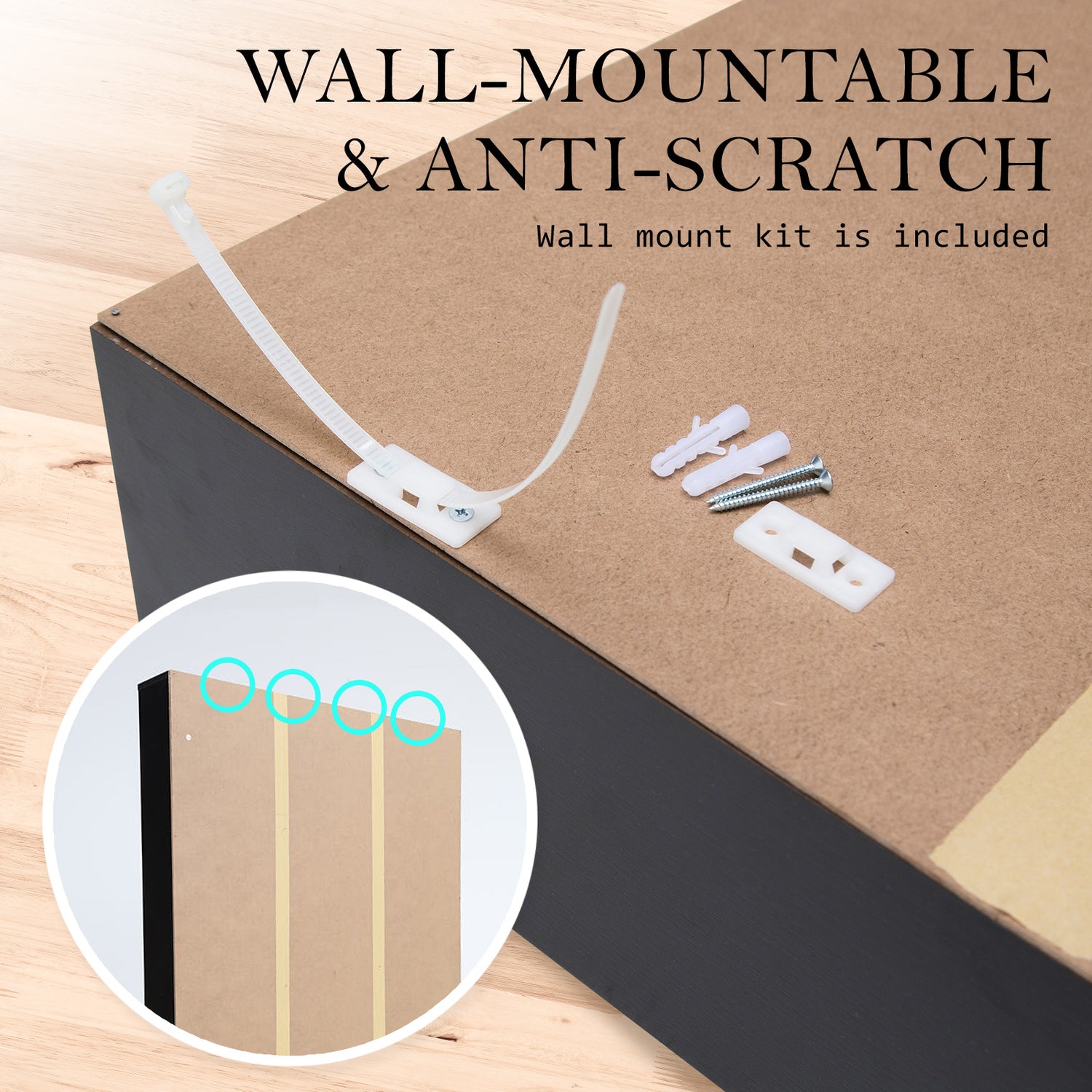 - Made of durable particle board, melamine faced