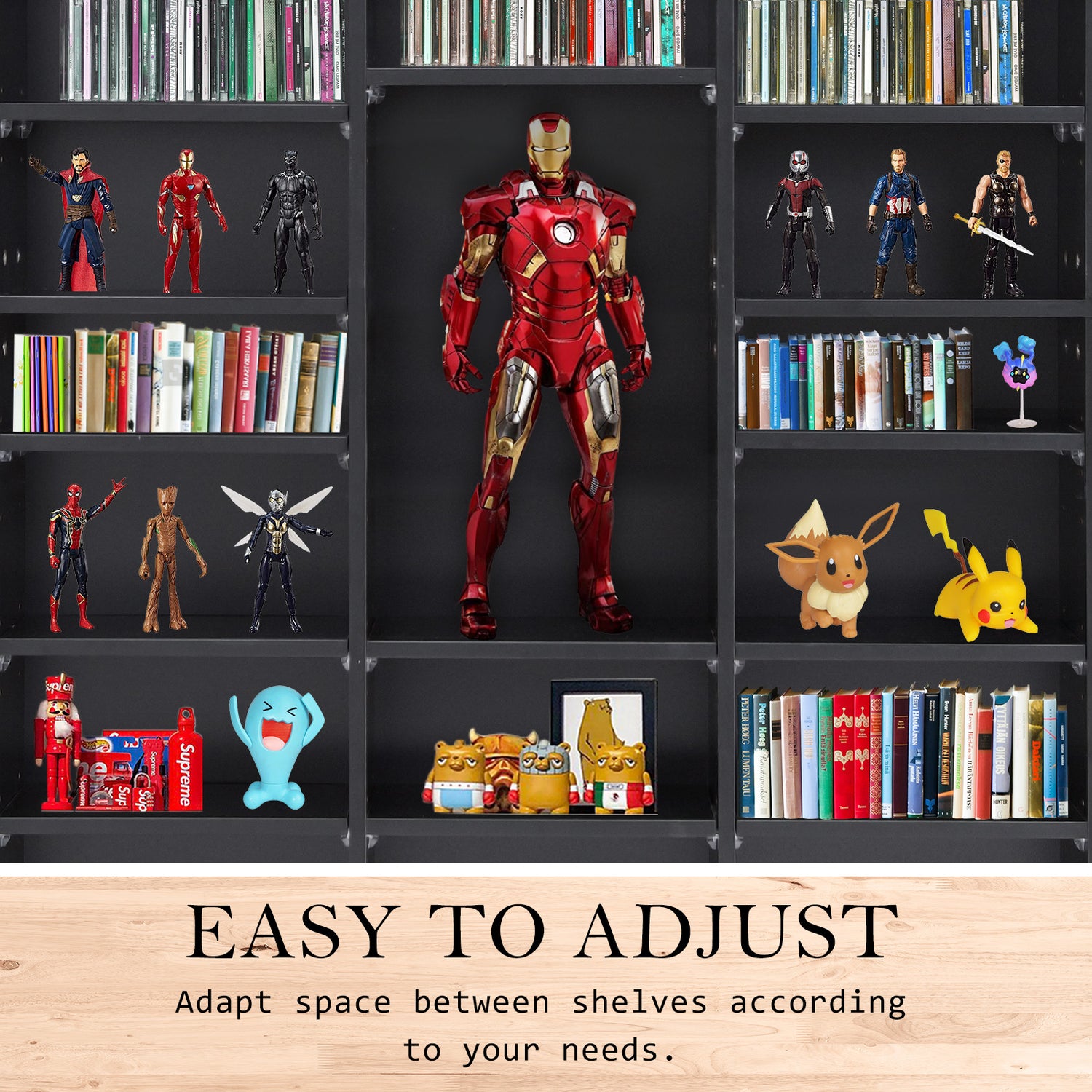 Yes, the shelves are fully adjustable, allowing you to customise the storage space for various media sizes including CDs, DVDs, Blurays, and books. This feature makes it one of the most versatile Bookcases & Bookshelves in Australia.