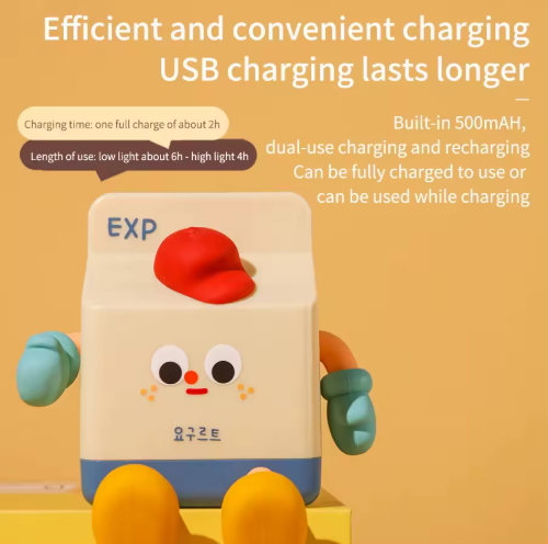 Adorable Milk Carton LED Night Light - USB Rechargeable Silicone Lamp with Tap Control, Timer & 3 Brightness Levels