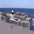 Accommodate for four people and is equipped with a rectangular shaped coffee table for you to place some drinks, snacks, or decorations. Made of powder-coated aluminum in the colors white or charcoal grey are easy to clean. Relax into the generous 40cm thicker cushions and enjoy entertaining in your garden.