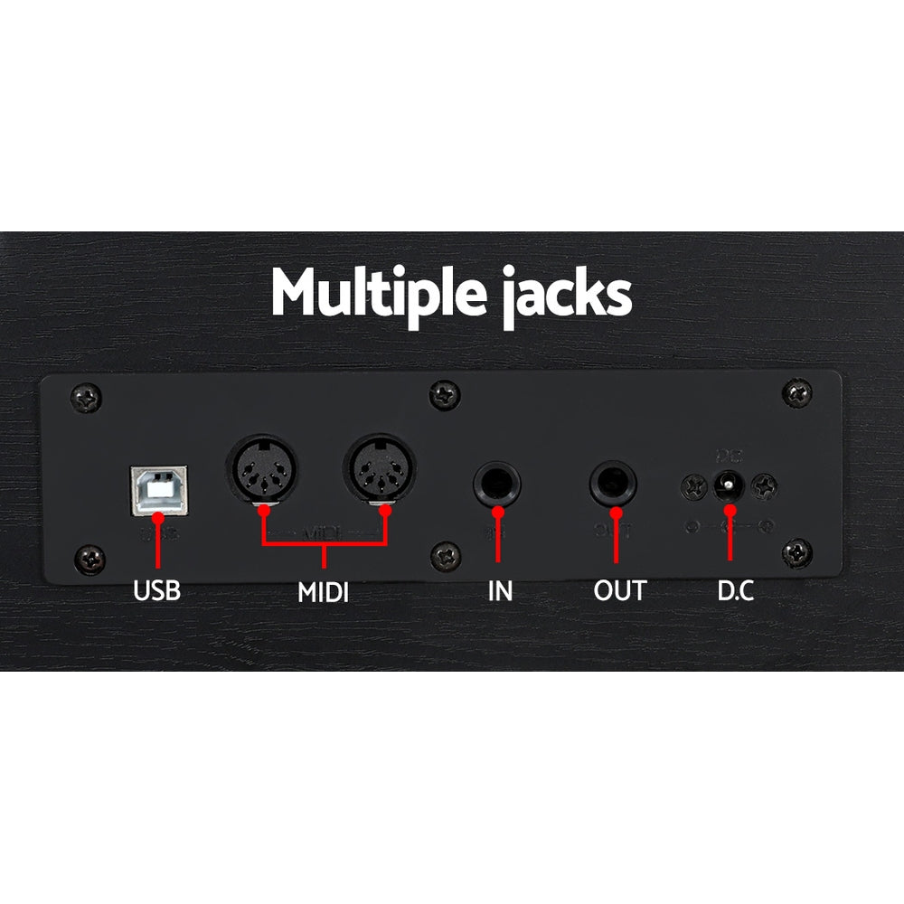 Do you love music? Do you want to spend your day playing and singing to your favourite songs? Let the Alpha 88-key Electric Keyboard help to realize your musical aspirations. With 88 semi-weight keys, the Alpha Portable Keyboard enables you to discover a whole new world of music with some of these exceptional built-in features: 600 rhythms, 800 timbres, a metronome, 80 demo songs, various effects controls, and much more. A clear LED display makes it easy to observe your keyboard functions. With various inputs for microphone and headphones as well as speaker outputs, the Alpha Keyboard allows you to record and playback your music for all to hear. Your package also includes an adjustable keyboard stand, a sheet music holder and a sustain pedal. Cultivate your love of music with an Electric Keyboard from Alpha.