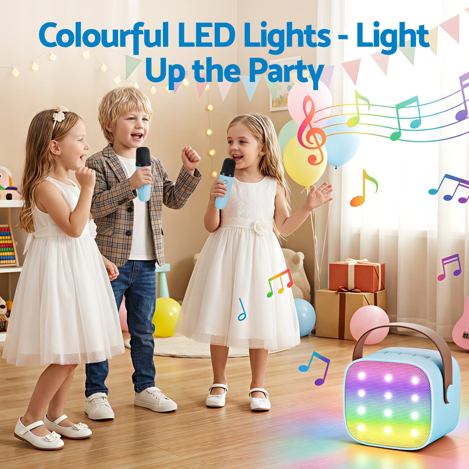 Turn any space into a stage with our Mini Portable Karaoke Machine. Designed for music lovers of all ages, this compact powerhouse combines high-fidelity sound with dazzling light effects to create an unforgettable party atmosphere. Whether you're hosting a backyard bash, a family birthday, or just a fun night in, our dual-mic system ensures everyone can join the performance. Simple to use, easy to carry, and packed with professional audio features, it's the excellent way to bring joy and music to your home.