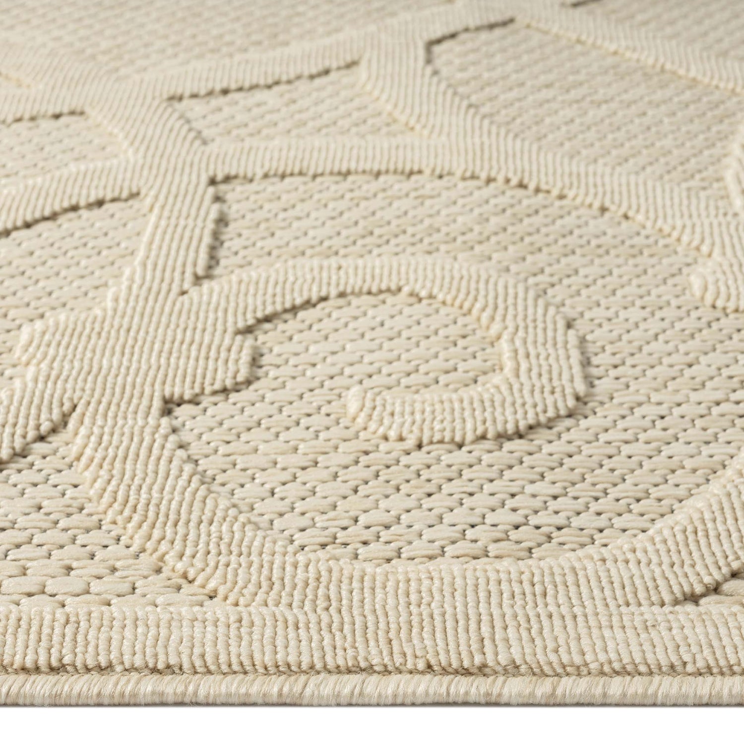 Alpha Outdoor rugs with traditional patterns and classic beauty area rugs in polypropylene are extremely durable and perfect for indoor or outdoor use. The area rugs collection offers highly detailed and sophisticated designs created through a beautiful textured weave. Select the colors, design, and style that will compliment in your home in round, rectangular or runner rugs.This elegant indoor/outdoor collection has subtle, trellis patterns woven into a multi-textured polypropylene pile, sculpted with a high-and-low technique for a beautiful, subdued relief effect. This deluxe collection is suitable for outdoor use in covered patios, balconies, terraces, and courtyards with its latex base. These attractive rugs also have a shed-resistant and anti-static pile that is both durable and easy to maintain. Collection: Havana Collection Colour: Cream Shape: Rectangle Construction: Power-loomed Main Materials: Polypropylene Backing Materials: Latex Pile Height (approx.): 6 to 8mm Total Thickness - Pile + Base (approx.): 8 to 10mm Density (Points per SQM): 256.000 Distressed Finish (Y/N): N Fringes (Y/N): N Country of Origin: Turkey Warranty: 12 months