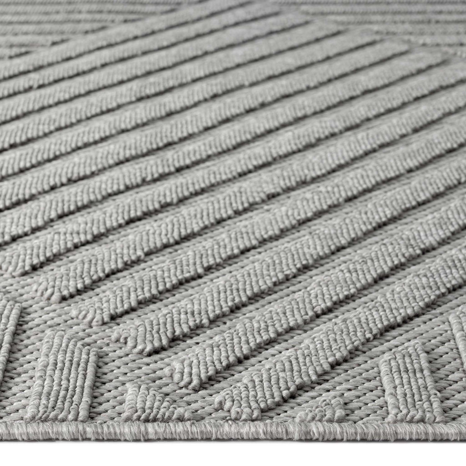 This elegant indoor/outdoor collection has subtle, trellis patterns woven into a multi-textured polypropylene pile, sculpted with a high-and-low technique for a beautiful, subdued relief effect. This deluxe collection is suitable for outdoor use in covered patios, balconies, terraces, and courtyards with its latex base. These attractive rugs also have a shed-resistant and anti-static pile that is both durable and easy to maintain. Collection: Havana Collection Colour: Light Grey Shape: Rectangle Construction: Power-loomed Main Materials: Polypropylene Backing Materials: Latex Pile Height (approx.): 6 to 8mm Total Thickness - Pile + Base (approx.): 8 to 10mm Density (Points per SQM): 256.000 Distressed Finish (Y/N): N Fringes (Y/N): N Country of Origin: Turkey Warranty: 12 months