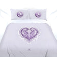 Bring love into your bedroom with this beautifully crafted White Unicorn Quilt Cover Set by Anne Stokes. It features print design of two gorgeous unicorn heads forming a romantic heart that depicts eternal love printed in white, purple, lilac, and pink colour shades that make your bedroom unique and attractive. It is made from Polyester Cotton fabric that is easy care and smooth to the skin.