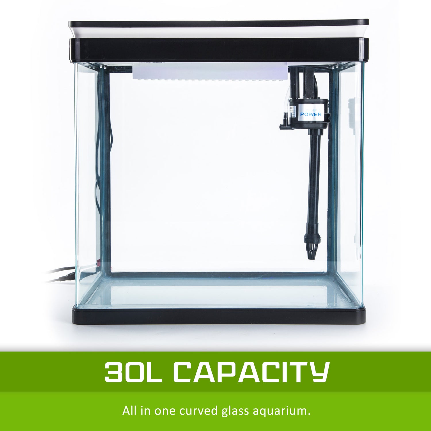 This Dynamic Power 30 litres all in one Curved Glass aquarium will make a beautiful feature in your home or work place. It comes complete with everything you need to enjoy the pleasure of designing and maintaining your very own aquarium.