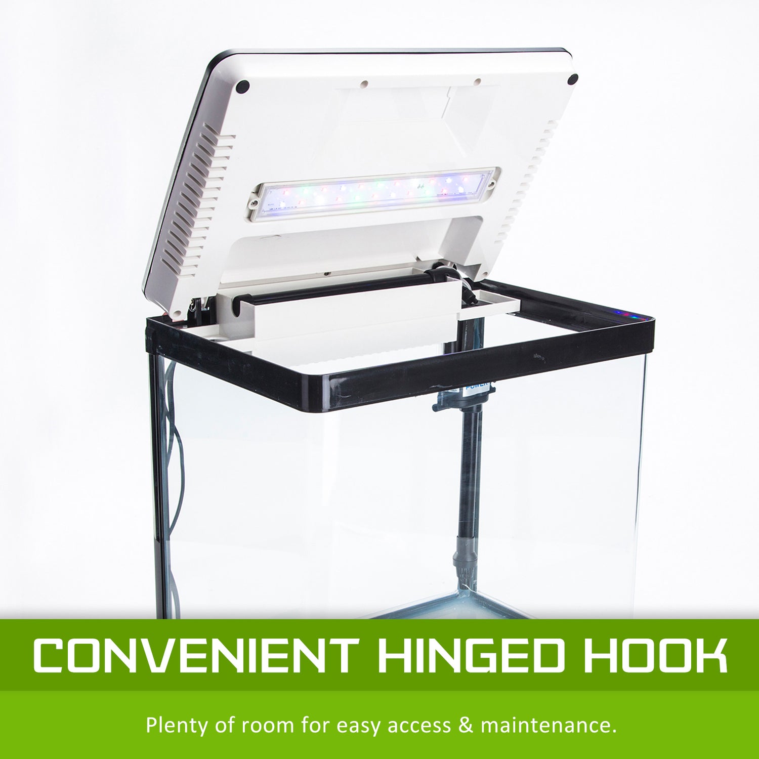 - Convenient hinged hood allows plenty of room for easy access and maintenance