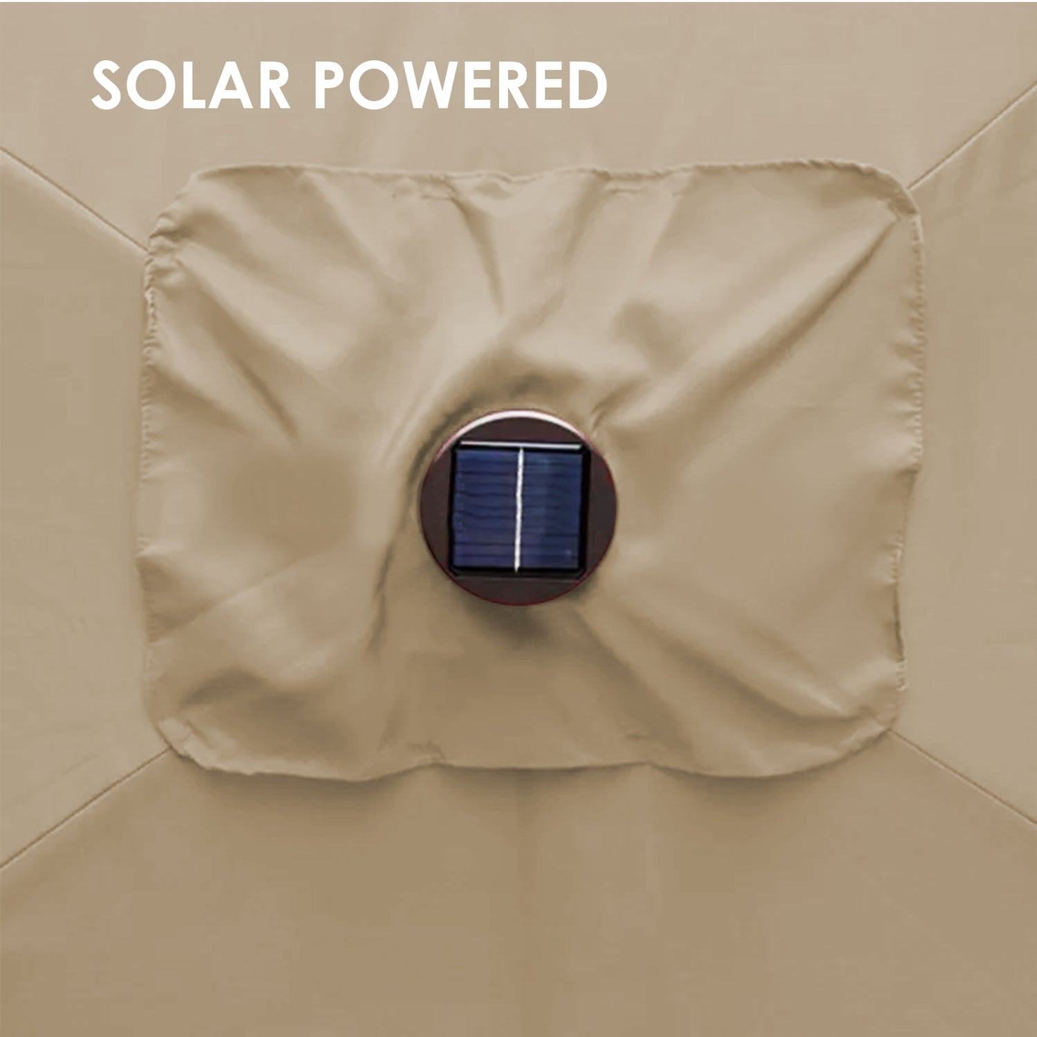 This 3-metre premium umbrella comes with rows of solar-powered LEDs built into each of the six umbrella ribs. The additional ribs provide extra rigidity and stability during high winds. All the steel componentry is industrial strength and powder-coated for long life and durability in the harsh Australian sun.