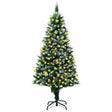 This beautiful artificial Christmas tree is very lifelike in its shape and appearance and is meant to create just the right atmosphere for this Christmas. The Christmas tree has pointy branches with white snow on tips; hence the appearance is extremely dense. The needle branches and pine cones included can be arranged in any shape. This Christmas tree can be used every year, making it a very economical choice compared to a real tree. It also has a metal base for stability. Featuring energy-efficient LED lights, it lights up beautifully and creates a cosy holiday atmosphere. Have fun during the holidays with this lovely Christmas tree! Note: The product has a USB connector, but the certified 5V USB power source is not included.