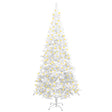 This stunningly dense Christmas tree with 1300 branch tips and 10 layers possesses a natural beauty and grace and will make a great addition to your holiday decor. The evenly spaced branches along the trunk allow plenty of room for your Christmas decorations, making it easier for hanging your favourite ornaments. Made of PVC, this easy-to-store Christmas tree can be used again every year, making it a very economical choice compared to a real tree. Thanks to its simple plug-in system, this tree is easy to assemble yet durable. Featuring energy-efficient LED lights, it lights up beautifully and creates a cosy holiday atmosphere. This Christmas tree, with a height of 240 cm, will be ideal for creating a unique Christmas atmosphere in your home, garden, office or store! Note: The product has a USB connector, but the certified 5V USB power source is not included.