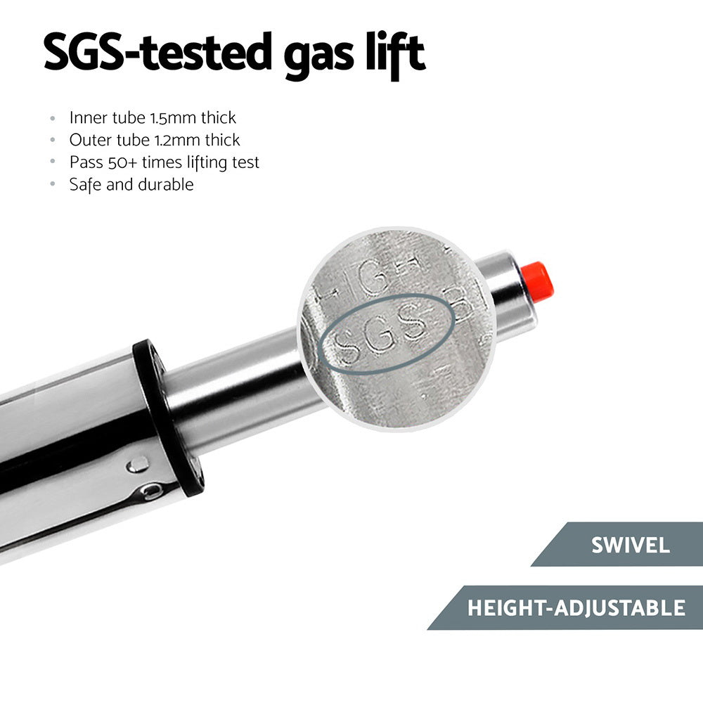 The Artiss 2x Leather Bar Stools combine modern functionality with enduring comfort for kitchen islands, breakfast bars, or entertainment spaces. Featuring luxe PU leather upholstery over plush foam padding, these swivel bar stools with full backrests provide all-day seating comfort. The SGS-certified gas lift lever allows effortless height adjustment, while the 360-degree rotation ensures easy mobility. Built with a corrosion-resistant chrome steel frame and stabilising base, these counter-height stools safely support up to 150kg. Complete with protective floor pads and tool-free assembly, they seamlessly blend durability with contemporary style in sleek black.