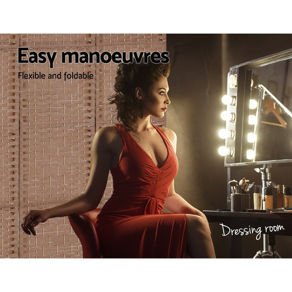 When you need instant private space, our 6-panel room divider helps create dedicated zones in the most hassle-free way. With its exotic and elegant design, our elegant panel divider certainly stands out from the looks of mundane dividers. Made from solid poplar wood, the divider is non-toxic, fade-resistant, waterproof and breathable. As for panels , they're beautifully crafted from rolled paper that mimics rattan look and feel. Lightweight and yet sturdy, our room divider utilises 2-way metal hinges to cope with robust use. Not least, the panels are also easily foldable for space saving storage.