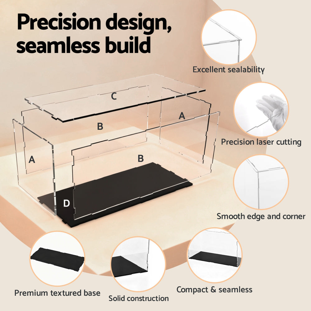 Showcase your favourite collectibles in style with this modern acrylic display case, measuring 35 × 15 × 15 cm. Designed with a modern creative look, it features high-clarity acrylic panels and a premium black base, giving your items a clean and elegant presentation.