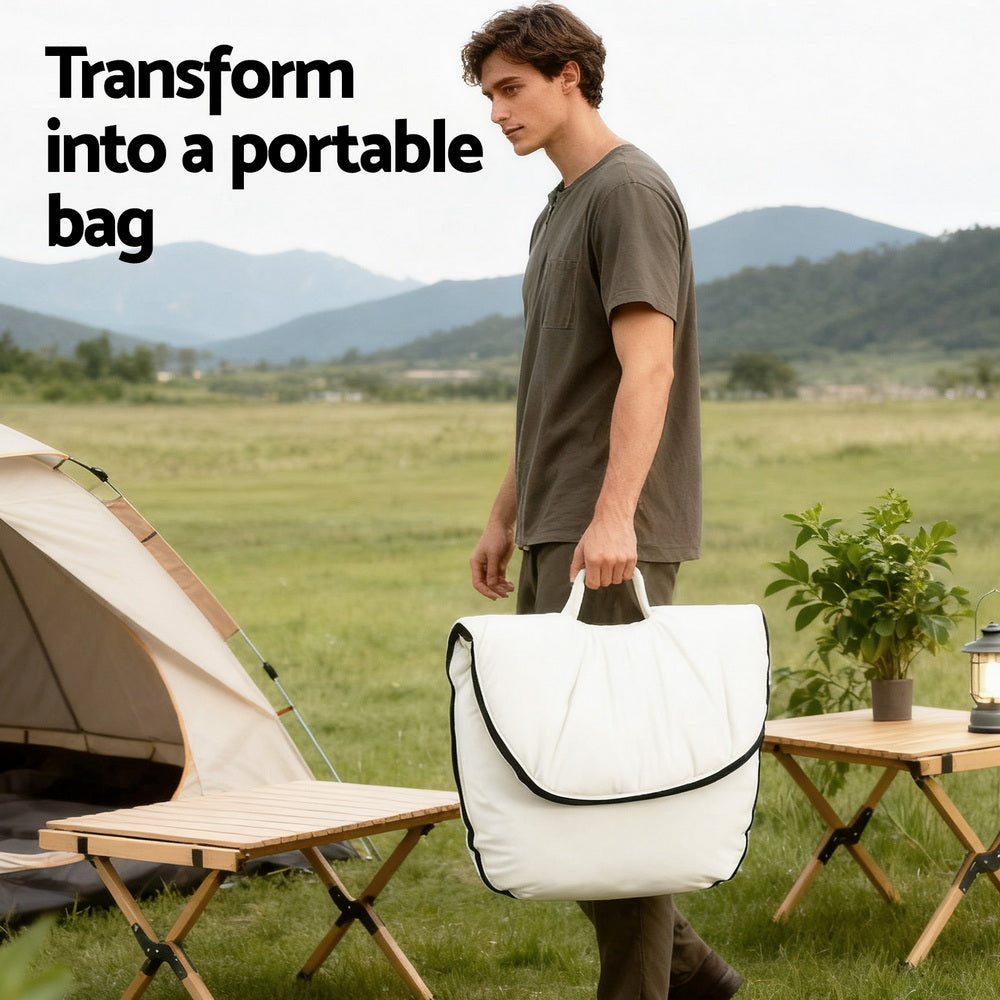 Experience the ultimate in flexible seating. This Artiss innovative 2-in-1 chair combines the convenience of a folding chair and then transforms into a portable tote bag for effortless carrying.