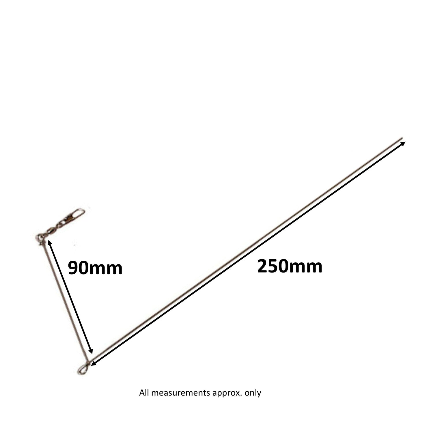 - Small Size: Best suited to 1/8 to � oz lures. Wire thickness: 0.9mm; 40mm eye to loop; 50mm straight edge.