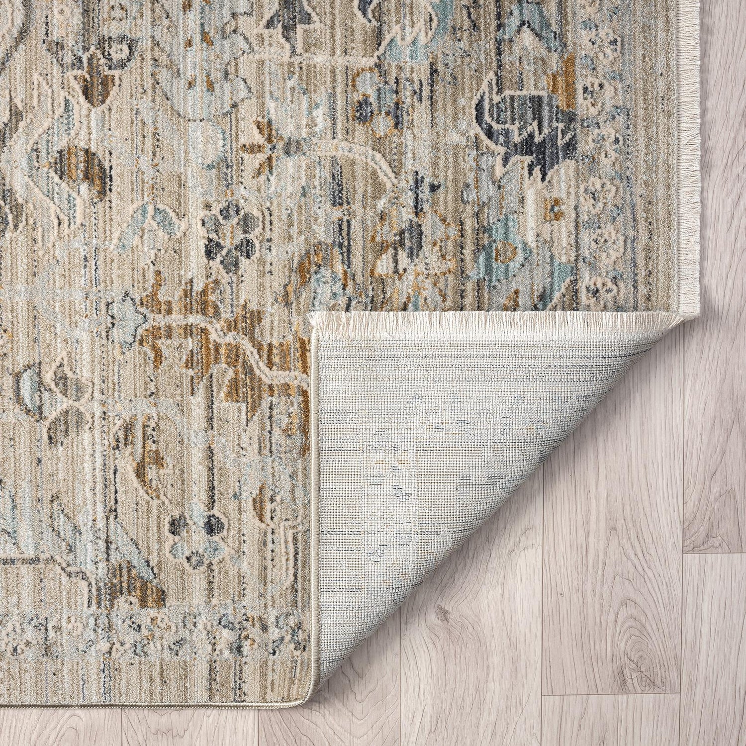 This exquisite rug is the perfect foundation for modern farmhouse ensembles that effortlessly anchors your look. It's made in Turkey and crafted from a blend of cross-woven pile using multi-textured polyester fibers, power-loomed into a soft cotton base, making it resistant to stains and spills. The Oriental-inspired pattern with scrolling botanical accents and a bordered motif give this piece a touch of traditional appeal, while the distressed design elevates the look with vintage charm. The muted, harmonious color palette used in these rugs make them blend into a variety of spaces. Plus, its low .25" pile height is easy to clean and works well in high-traffic rooms like the kitchen or bathroom floor space in your home and will complement almost all color schemes. This highly decorative collection also contains shed-resistant and anti-static properties and is easy to maintain.
