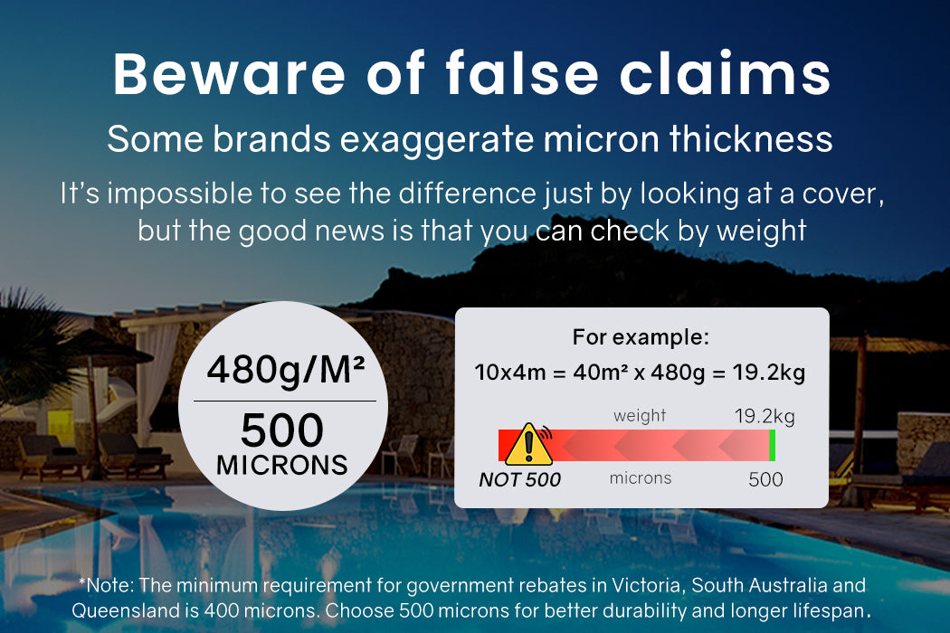 This blanket has good durability because of its ability to withstand UV damage, chemical penetration and tearing. While other brands may claim to have a thickness of 400 Microns, we strongly recommend that you check that the weight of their product matches ours. If it doesn't weigh as much, or if they don't advertise the product weight, then you should be wary of their claim.