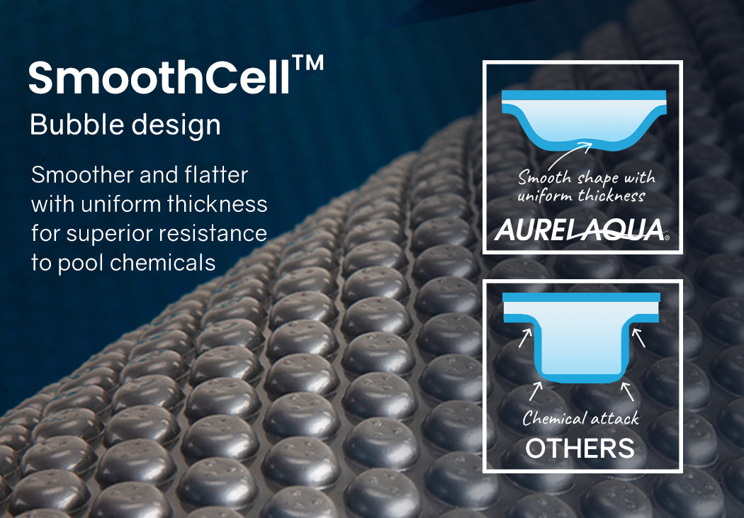Swimming is a truly Australian pastime, and pools are such a fantastic amenity to your home. However, there are inconveniences with constantly maintaining a household pool. The Aurelaqua Solar Swimming Pool Cover greatly reduces these inconveniences by providing a host of beneficial care, maintenance and money saving functions. The innovative split blue and silver isothermal design fulfills unique benefits for your pool. While the sun is shining, the translucent blue rippled surface allows for greater heat to easily pass through, magnified by the bubbles to naturally heat the water. The silver underside then acts to trap the heat underneath and retain the pools warmth for longer periods of time, which means swimming seasons extend further into the year. This isothermal effect also inhibits the negative effects of photosynthesis such as the proliferation of algae.