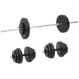 This versatile barbell with plates set is a perfect choice for those who looking for varied workout options. Durable material: Made of chrome plated steel, the barbell is surely sturdy and stable. Additionally, the barbell plate is made of cement and covered with robust, floor-friendly plastic, allowing you not to experience any annoying clanging sounds of the weights.Different weight set: A suitable combination is easily made with the 4 different weights, 2 x 10 kg, 4 x 5 kg, 6 x 1.25 kg, 4 x 2.5 kg The different weight sets always can meet your different training needs.Clearly stamped weight: The weight is clearly stamped on each weight disc for quick and easy identification.Multifunctional dumbbell: The multifunctional barbell set is suitable for training your chest, biceps, arms, triceps, and back muscles.Practical star lock: The star-shaped locks ensure the weights stay in place firmly. Note:Each product comes with an assembly manual in the box for easy assembly.