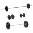 This versatile barbell and dumbbell with plates set is a perfect choice for those who looking for varied workout options. Durable material: Made of chrome plated steel, the barbell is surely sturdy and stable. Additionally, The barbell plate is made of cement and covered with robust, floor-friendly plastic, allowing you not to experience any annoying clanging sounds of the weights.Different weight set: A suitable combination is easily made with the 4 different weights, 4 x 2.5 kg, 6 x 1.25 kg, 2 x 5 kg, 2 x 10 kg. The different weight sets always can meet your different training needs.Clearly stamped weight: The weight is clearly stamped on each weight disc for quick and easy identification.Multifunctional dumbbell: The multifunctional barbell set is suitable for training your chest, biceps, arms, triceps, and back muscles.Practical star lock: The star-shaped locks ensure the weights stay in place firmly. Note:Each product comes with an assembly manual in the box for easy assembly.