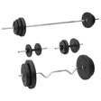 This versatile barbell and dumbbell with plates set is a perfect choice for those who looking for varied workout options. Durable material: Made of chrome plated steel, the barbell is surely sturdy and stable. Additionally, The barbell plate is made of cement and covered with robust, floor-friendly plastic, allowing you not to experience any annoying clanging sounds of the weights.Different weight set: A suitable combination is easily made with the 5 different weights, 4 x 2.5 kg, 6 x 1.25 kg, 2 x 10 kg, 2 x 5 kg, 2 x 15 kg. The different weight sets always can meet your different training needs.Clearly stamped weight: The weight is clearly stamped on each weight disc for quick and easy identification.Multifunctional dumbbell: The multifunctional barbell set is suitable for training your chest, biceps, arms, triceps, and back muscles.Practical star lock: The star-shaped locks ensure the weights stay in place firmly. Note:Each product comes with an assembly manual in the box for easy assembly.