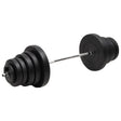 - Plate weight: 4 x 5 kg, 2 x 7.5 kg, 2 x 1.25 kg, 2 x 15 kg, 2 x 10 kg