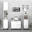 This bathroom cabinet is a great choice for your bathroom, making it tidy and organised! Durable material: The engineered wood is of exceptional quality with smooth surface and also features strength, stability, and resistance to moisture.Ample storage space: The bathroom furniture has 2 drawers and 1 compartment with door, offering various storage options and extra space to store items in your bathroom.Metal feet: The metal feet offer sturdiness and stability for the toilet cabinet.Flexible design: You can install the door and drawers either on the left side or right side based on your own needs. Warning:To prevent it being overturned, this product must be used with the provided wall attachment device.
