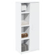 The bathroom cabinet is an ideal choice for your space, combining both style and functionality, offering ample storage to keep your toiletries and essentials neatly organised. Stable and durable material: Engineered wood is a durable and stable material with a smooth surface that is resistant to moisture, warping, and splitting, making it a reliable choice for a variety of projects.Roll holder: The bathroom storage cabinet includes a built-in paper roll holder, enhancing convenience by keeping toilet paper within easy reach and neatly organised.Ample storage space: This bath cabinet offers versatile storage options with open compartments for easy access to frequently used items, and a closed cabinet for storing larger items like towels and cleaning supplies.Customisable installation: You can assemble the door either to the left or right side of the cabinet opening, according to your personal preferences or space requirements.Easy to maintain: Thanks to its smooth surface, the bathroom cupboard is easy to clean with a damp cloth and requires less maintenance. Warning:To prevent it from tipping over, this product must be used with the provided wall attachment device.