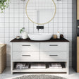 Are you planning to renovate your countertops at home? This wooden bathroom countertop is a perfect choice! Durable construction: This bathroom worktop is made of solid oak wood, which is a beautiful natural material. Oak wood has a medium brown colour and a dense grain, contributing to its unique look.Versatile applications: Besides a bathroom vanity top, this wooden countertop can be combined with different bases according to your needs. It can be used as a shelf, cabinet top, desk top, table top etc.Treated surface: The bathroom top has been treated with dark paint, so it is ready for use as an additional finish is not required.Handmade with live edge: This bathroom vanity countertop is handmade with a live edge. Due to that the knots, cracks, slightly curved shapes, and colour tones are part of the oak wood, every piece of oak countertop has its own unique character to display. The delivery is random. Good to know:As a natural product, wood may show knots and imperfections that we fill with black fillings to ensure a smooth appearance.