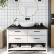 Are you planning to renovate your countertops at home? This wooden bathroom countertop is a perfect choice! Durable construction: This bathroom worktop is made of solid oak wood, which is a beautiful natural material. Oak wood has a medium brown colour and a dense grain, contributing to its unique look.Versatile applications: Besides a bathroom vanity top, this wooden countertop can be combined with different bases according to your needs. It can be used as a shelf, cabinet top, desk top, table top etc.Treated surface: The bathroom top has been treated with dark paint, so it is ready for use as an additional finish is not required.Handmade with live edge: This bathroom vanity countertop is handmade with a live edge. Due to that the knots, cracks, slightly curved shapes, and colour tones are part of the oak wood, every piece of oak countertop has its own unique character to display. The delivery is random. Good to know:As a natural product, wood may show knots and imperfections that we fill with black fillings to ensure a smooth appearance.