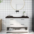Are you planning to renovate your countertops at home? This wooden bathroom countertop is a perfect choice! Durable construction: This bathroom worktop is made of solid oak wood, which is a beautiful natural material. Oak wood has a medium brown colour and a dense grain, contributing to its unique look. Due to the hinge design, it can be folded and stored in narrow spaces.Versatile applications: Besides a bathroom vanity top, this wooden countertop can be combined with different bases according to your needs. It can be used as a shelf, cabinet top, desk top, table top etc.Treated surface: The bathroom top has been treated with dark paint, so it is ready for use as an additional finish is not required.Handmade with live edge: This bathroom vanity countertop is handmade with a live edge. Due to that the knots, cracks, slightly curved shapes, and colour tones are part of the oak wood, every piece of oak countertop has its own unique character to display. The delivery is random. Good to know:As a natural product, wood may show knots and imperfections that we fill with black fillings to ensure a smooth appearance.