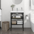 With this bathroom washbasin frame, you can create additional storage space for your bathroom with a clean, tidy appearance. Made of powder-coated iron, this wash stand is weather-resistant and durable. The washbasin frame gives easy access to towels and baskets and creates a more ample space than closed storage. The bathroom console frame is easy to clean with a damp cloth.