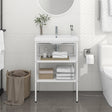 With this bathroom washbasin frame, you can create additional storage space for your bathroom with a clean, tidy appearance. Made of powder-coated iron, this wash stand is weather-resistant and durable. The washbasin frame gives easy access to towels and baskets and creates a more ample space than closed storage. The bathroom console frame is easy to clean with a damp cloth.